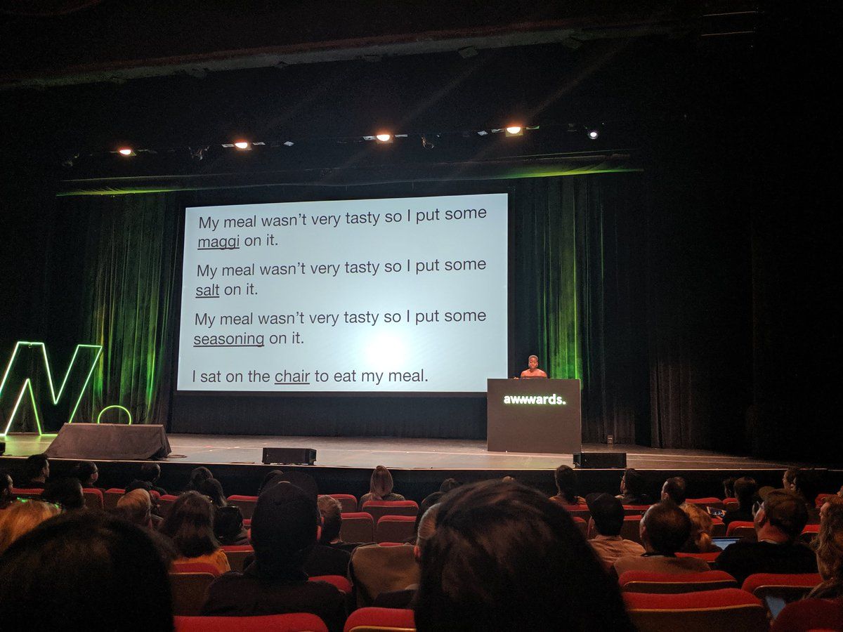 2019 May 10 "Okay well it's not perfect because it's code" — @YellzHeard totally killing it at #AwwwardsConf #awwwardsSF