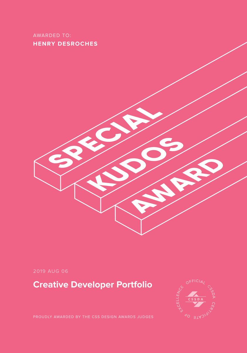 for my personal site portfolio project. It's the first formal recognition I've ever received for my work on the web, and I'm super honored! 😍