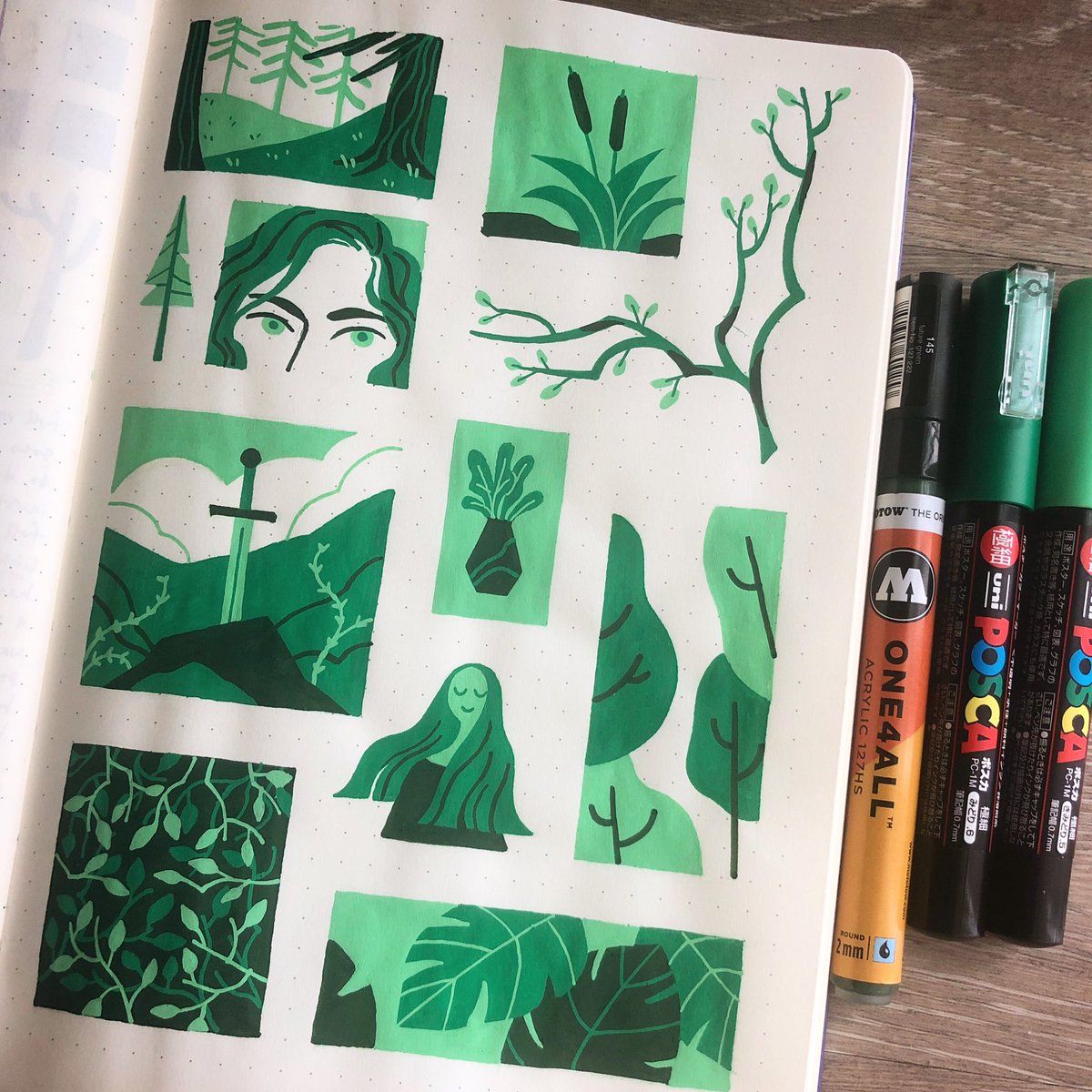 : another page of paint pen drawings using a limited palette 🌲