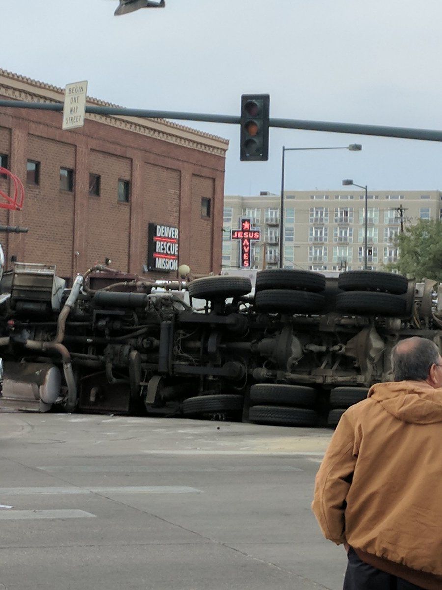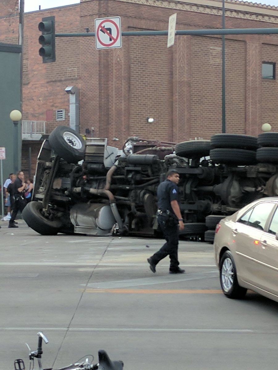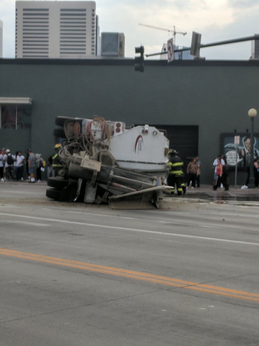 2017 Sep 10 Massive crash involving an ambulance and a rolled cement truck at Park & Broadway 😮 shook my whole apartment.